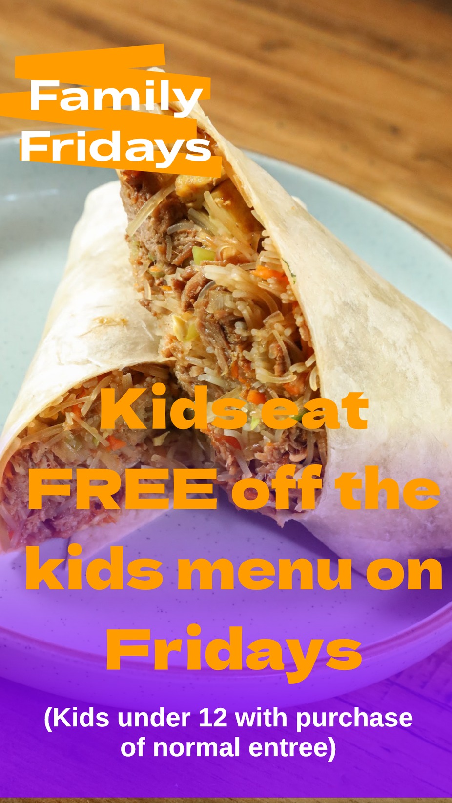 We know those kiddos can be picky, but don't let that stop you from trying something adventurous! Every Friday kids eat for FREE off the kids menu (under 12, one free kids meal per entree)!